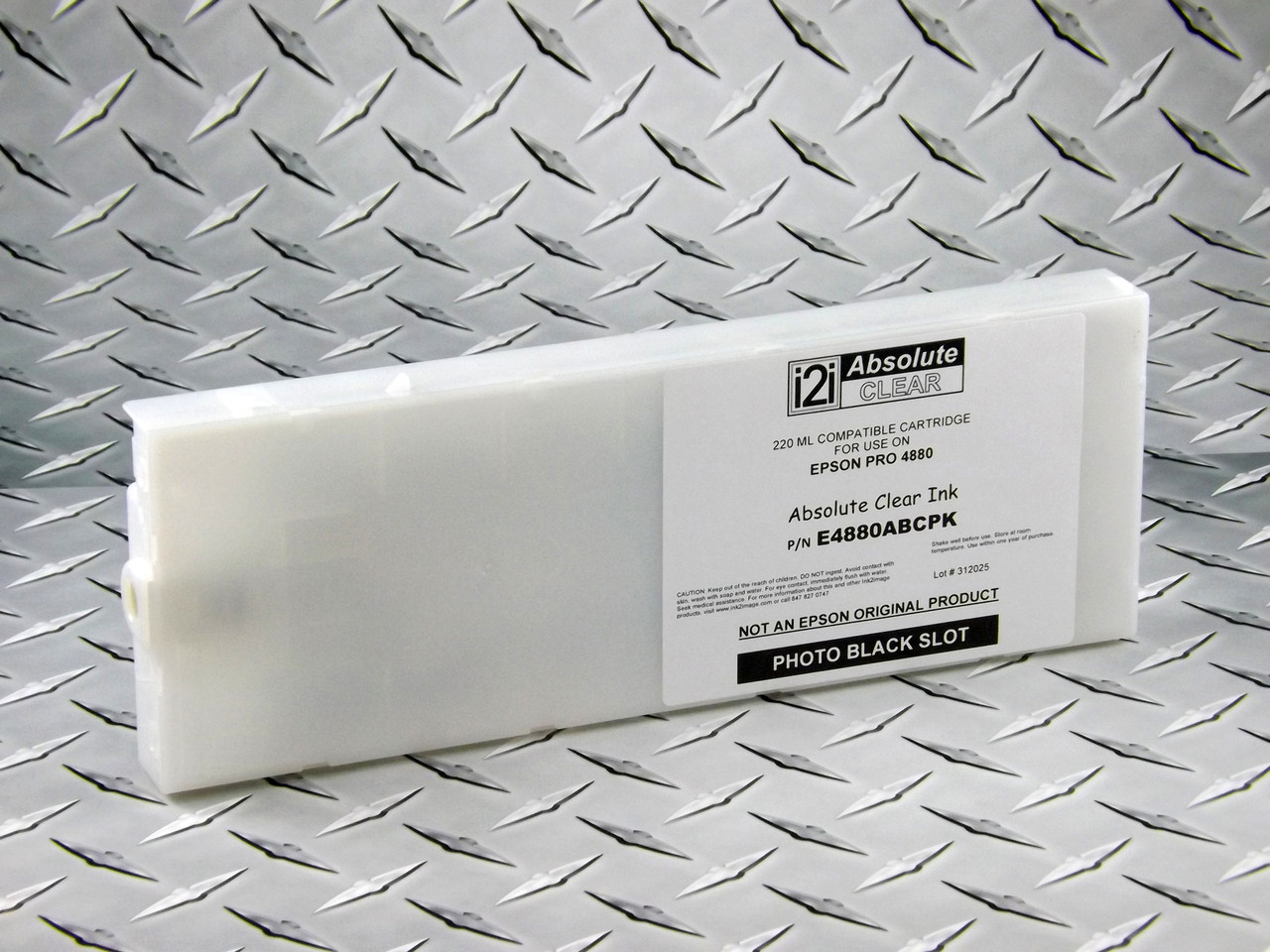 Single use 220 ml cartridge for the Epson Pro 4880 filled with Absolute Clear ink for non-active print heads when making screen positives. For use in the photo black cartridge slot only.