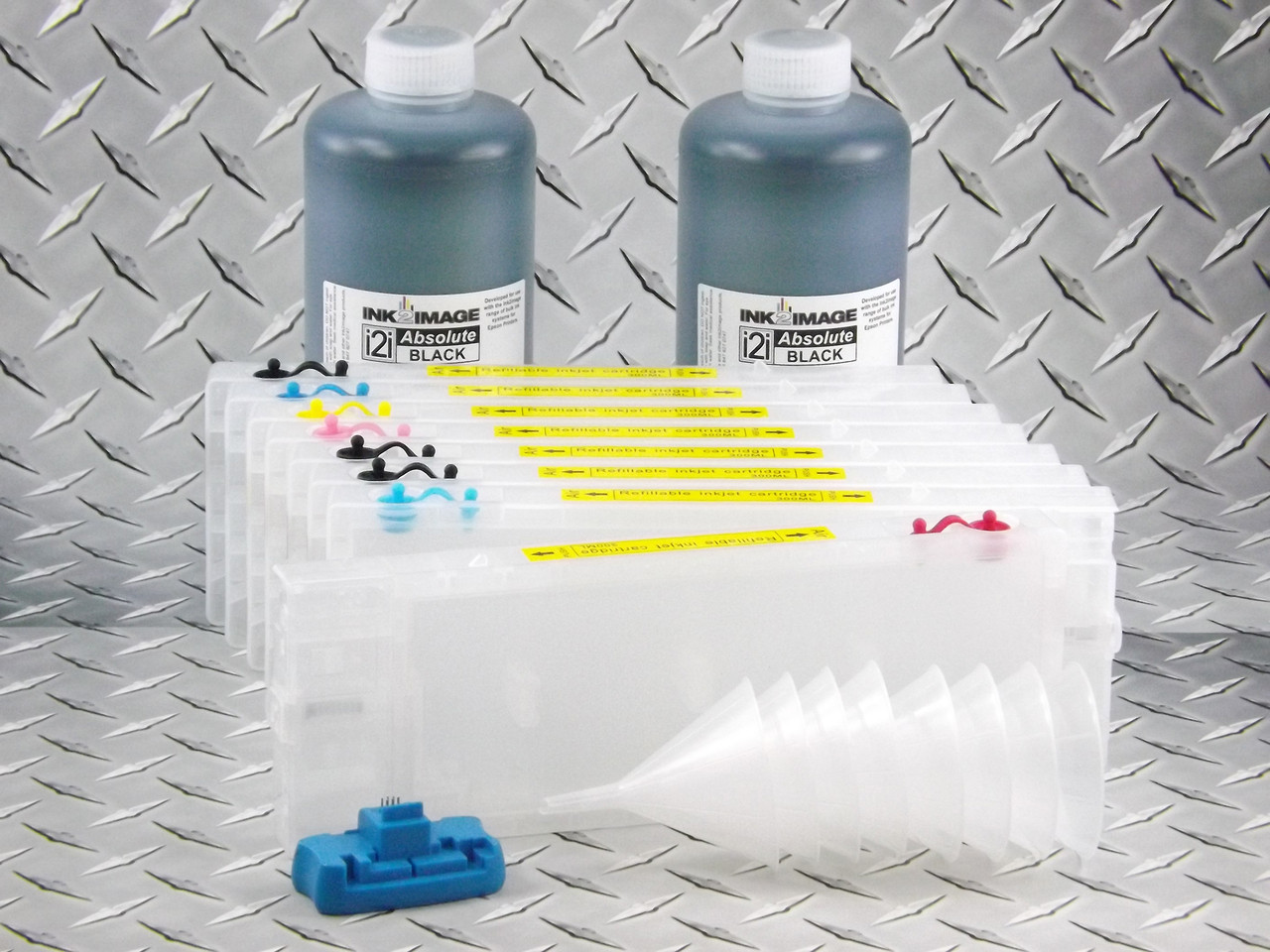 - Refillable Cartridge Kit for the Epson Pro 4880 with 2 x 1 liter Bottles of i2i Absolute Black ink for making Screen Separations (black cartridge has matte black chip installed)
