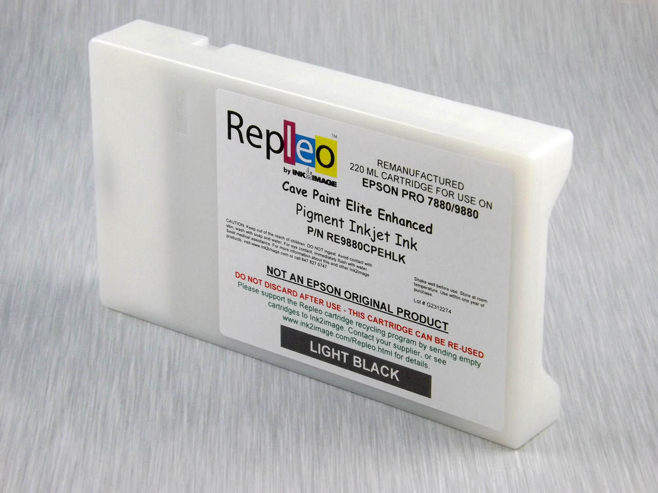 - Repleo Recycled 220 ml Cartridge for the Epson Pro 7880/9880 filled with Cave Paint Elite Enhanced pigment ink - Light Black