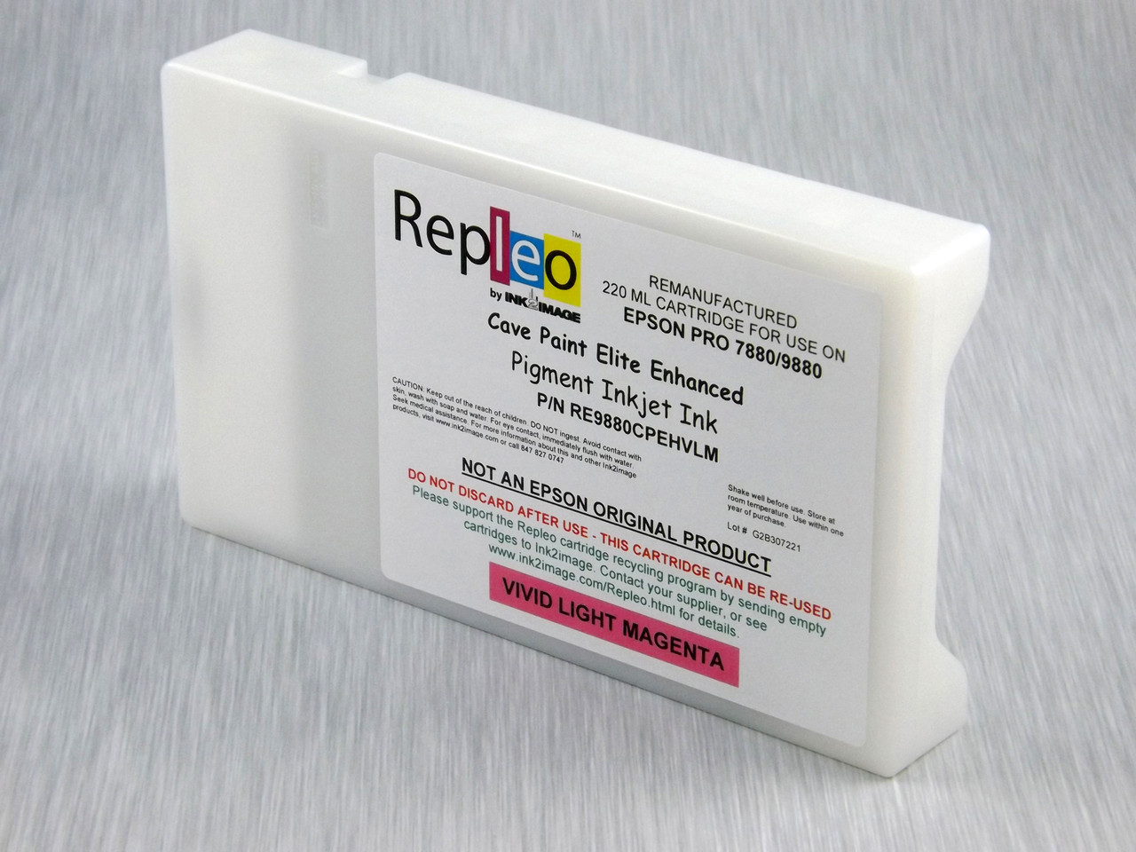 - Repleo Recycled 220 ml Cartridge for the Epson Pro 7880/9880 filled with Cave Paint Elite Enhanced pigment ink - Vivid Light Magenta